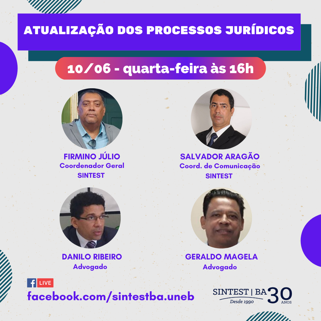 A transmissão será realizada na nossa página no Facebook: www.facebook.com/sintestba.uneb.
