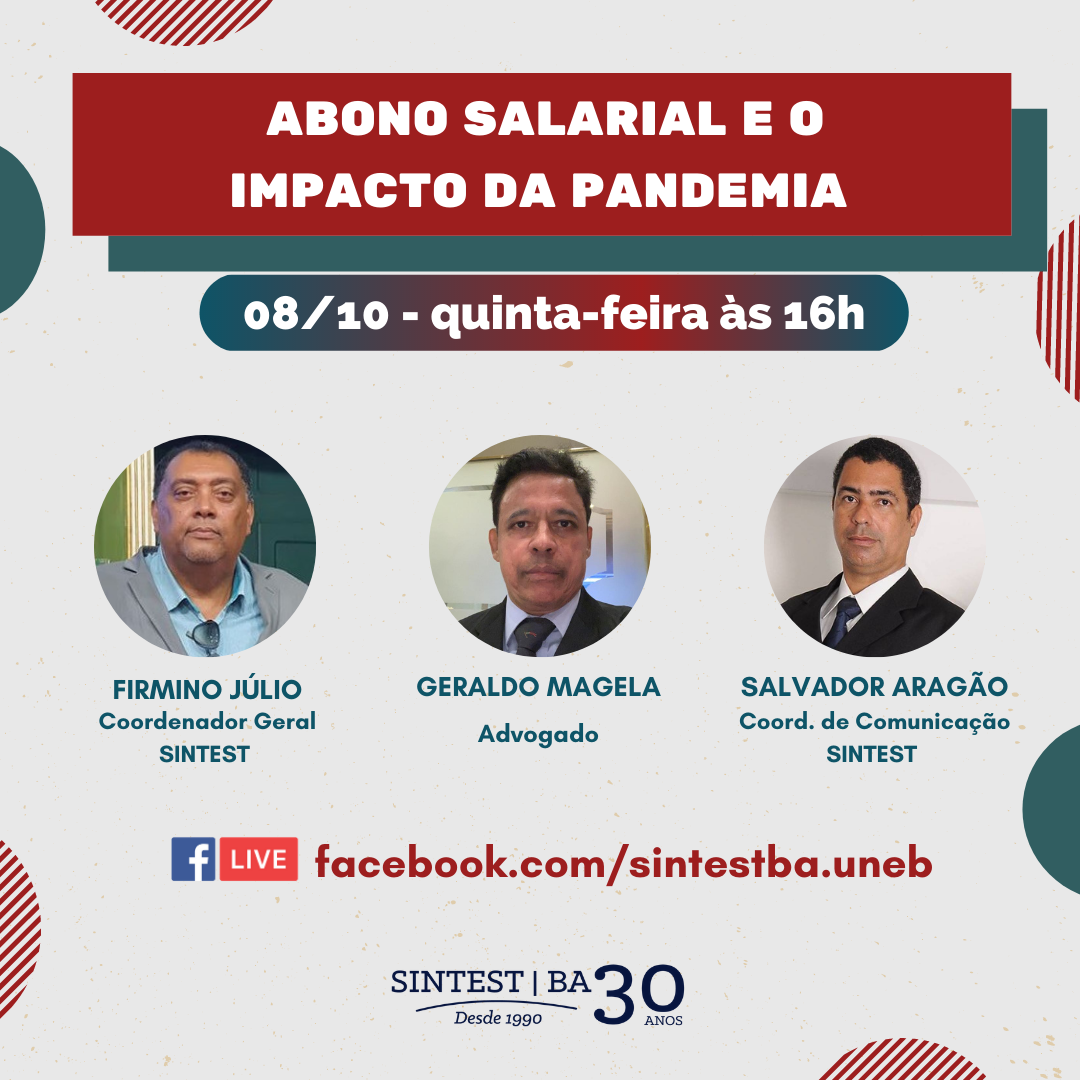 SINTEST fará live sobre sobre abono salarial e o impacto da pandemia no dia 08/10