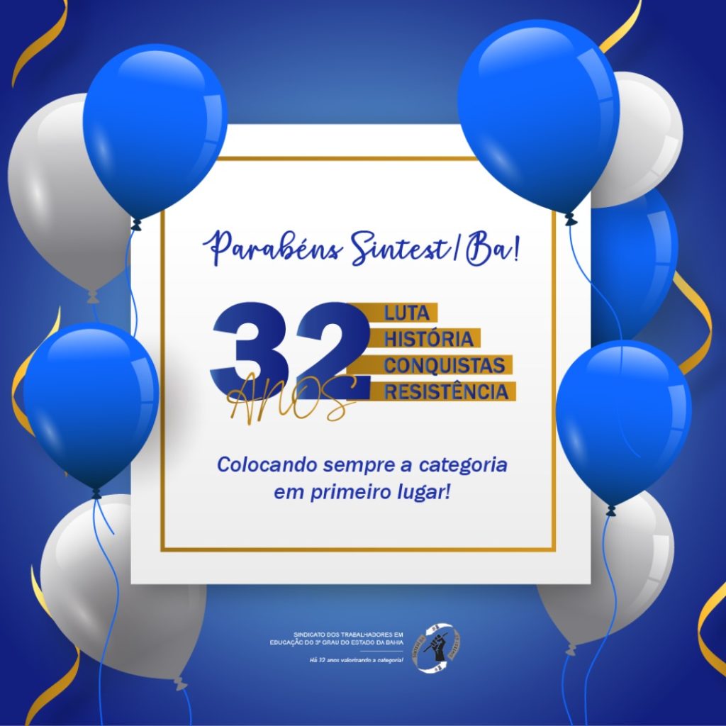Dia 09 de março, o SINTEST/BA completa 32 anos. Uma caminhada de lutas e conquistas de uma história que iniciou em 1990 e que se reescreve a cada dia. Graças à garra e a participação de seus filiados (as), ex-coordenadores (as) e colaboradores (as), o SINTEST se destaca pela postura atuante na defesa dos direitos da categoria, liderança e capacidade de mobilização.