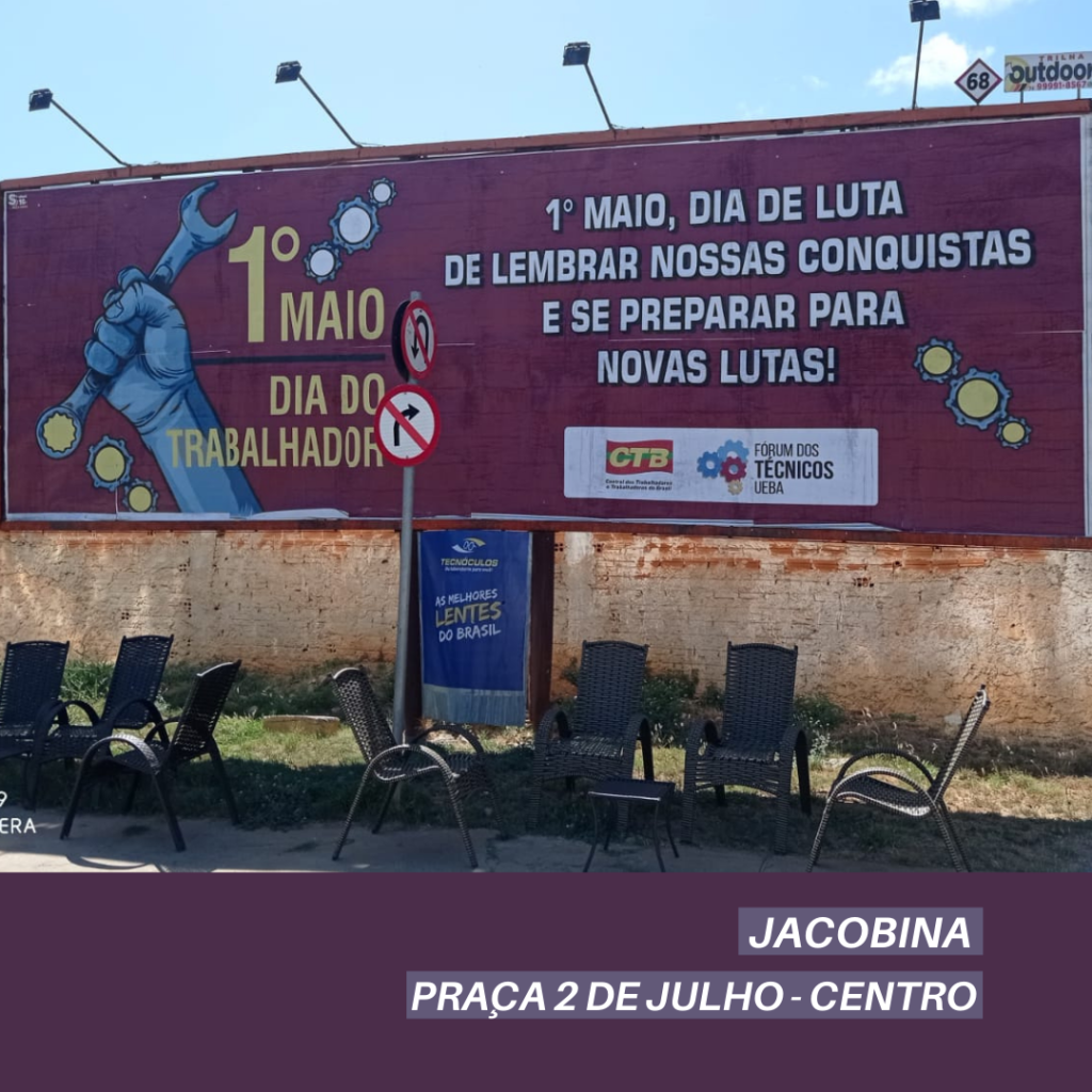 Nesse sentido, o Fórum dos Técnicos instalou novos outdoors em diversos pontos estratégicos das cidades baianas com a temática, reafirmando assim seu compromisso na defesa dos direitos e das vidas de todos(as) trabalhadores(as).