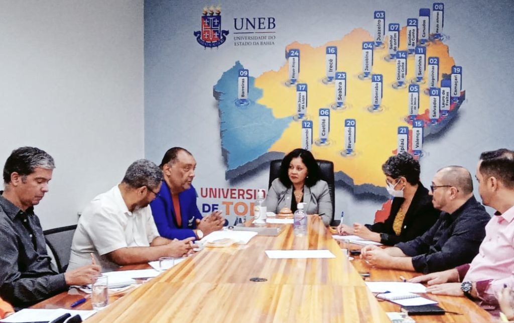 A diretoria executiva do Sindicato dos Trabalhadores em Educação do Terceiro Grau (SINTEST/BA-UNEB) participou em 11 de agosto, da primeira reunião com a nova gestão da Universidade do Estado da Bahia (UNEB). O encontro aconteceu na sala de reunião da reitoria, e foram discutidos 20 pontos de pauta (veja) apresentada pela diretoria, representando parte das demandas historicamente represadas dos servidores técnicos administrativos da instituição.