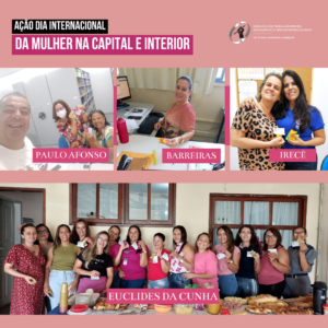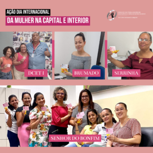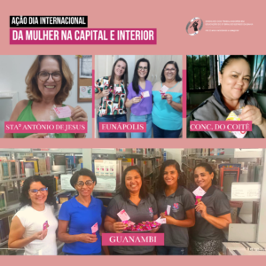 Para homenagear as mulheres servidoras pelo Dia Internacional da Mulher, o SINTEST/BA UNEB realizou no dia 08 de março, ação comemorativa nos departamentos e setores da capital, interior e no Jequitaia na UNEB. Os diretores do sindicato junto com os representantes de base sindical distribuíram bombons acompanhados de cartão mensagem às técnicas, analistas, auxiliares, REDA e terceirizadas da universidade.