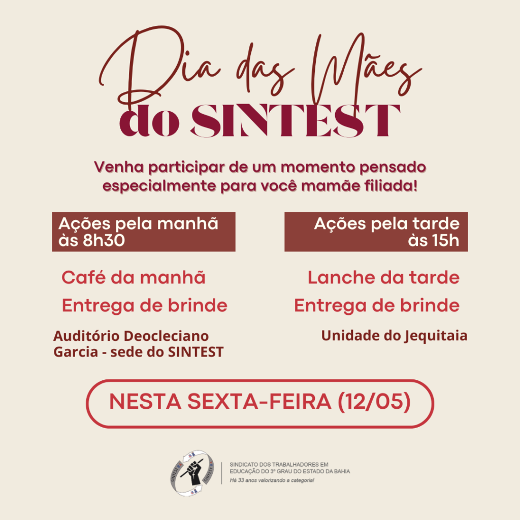 Um momento especial para as mamães servidoras! O SINTEST realiza nesta sexta-feira (12/05), atividade especial em homenagem do Dia das Mães na capital e nos departamentos do interior.