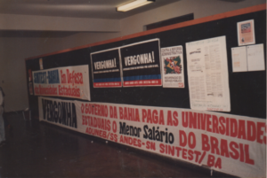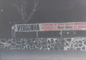 Movimento do SINTEST/BA em 1996 expondo que o governo da Bahia pagava o menor salário aos servidores das universidades estaduais em todo o Brasil.