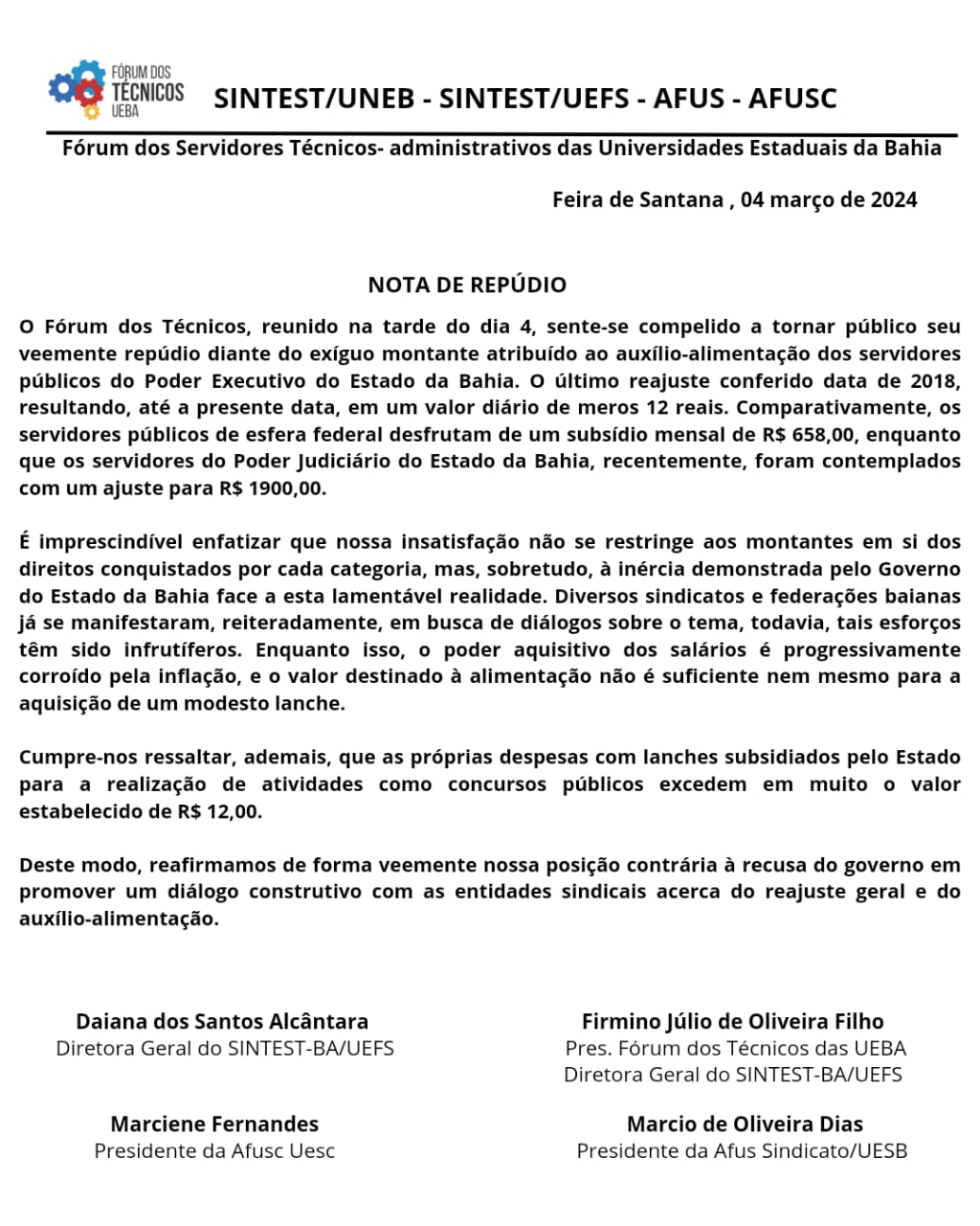 FÓRUM DOS TÉCNICOS | NOTA DE REPÚDIO