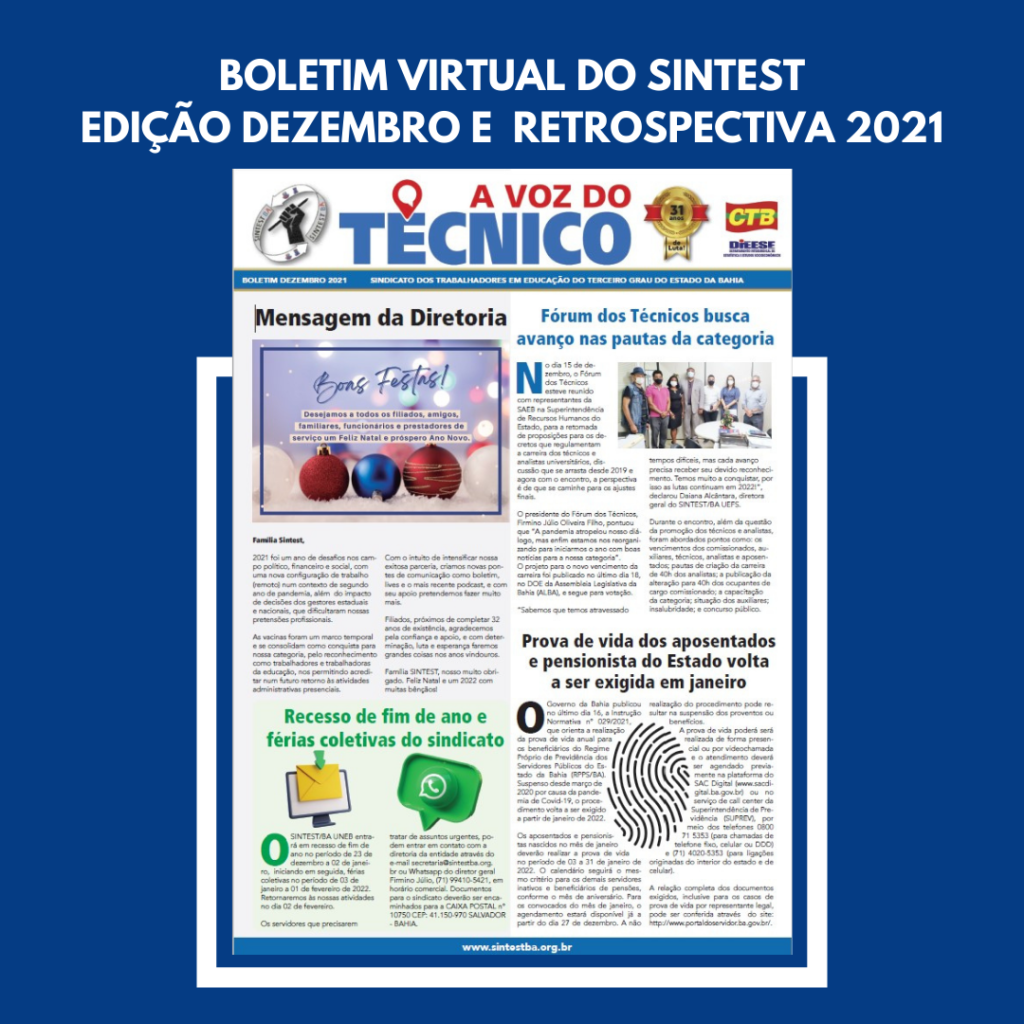 BOLETIM VIRTUAL A VOZ DO TÉCNICO: RETROSPECTIVA 2021 DO SINTEST UNEB